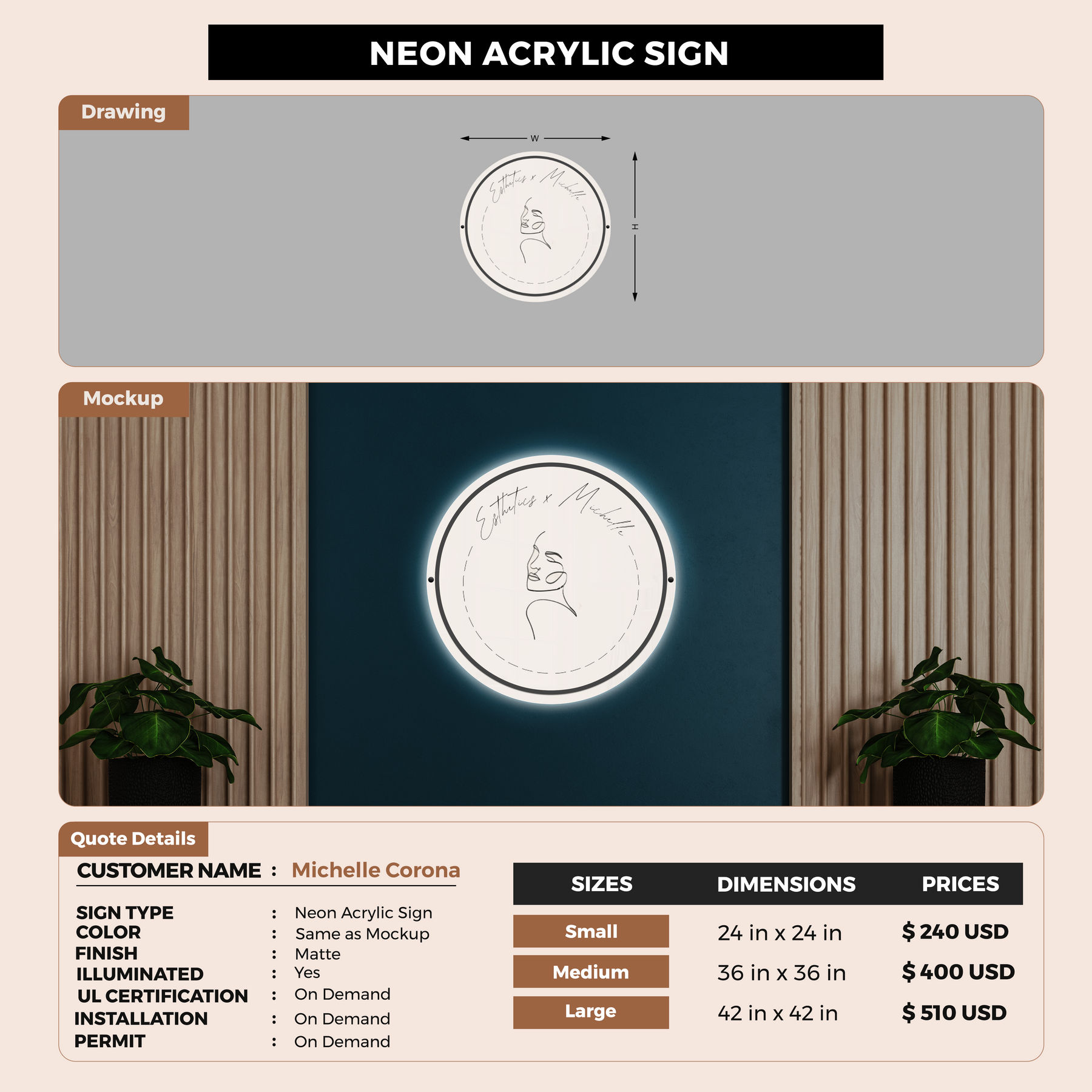 Neon Acrylic Sign for Michelle Corona