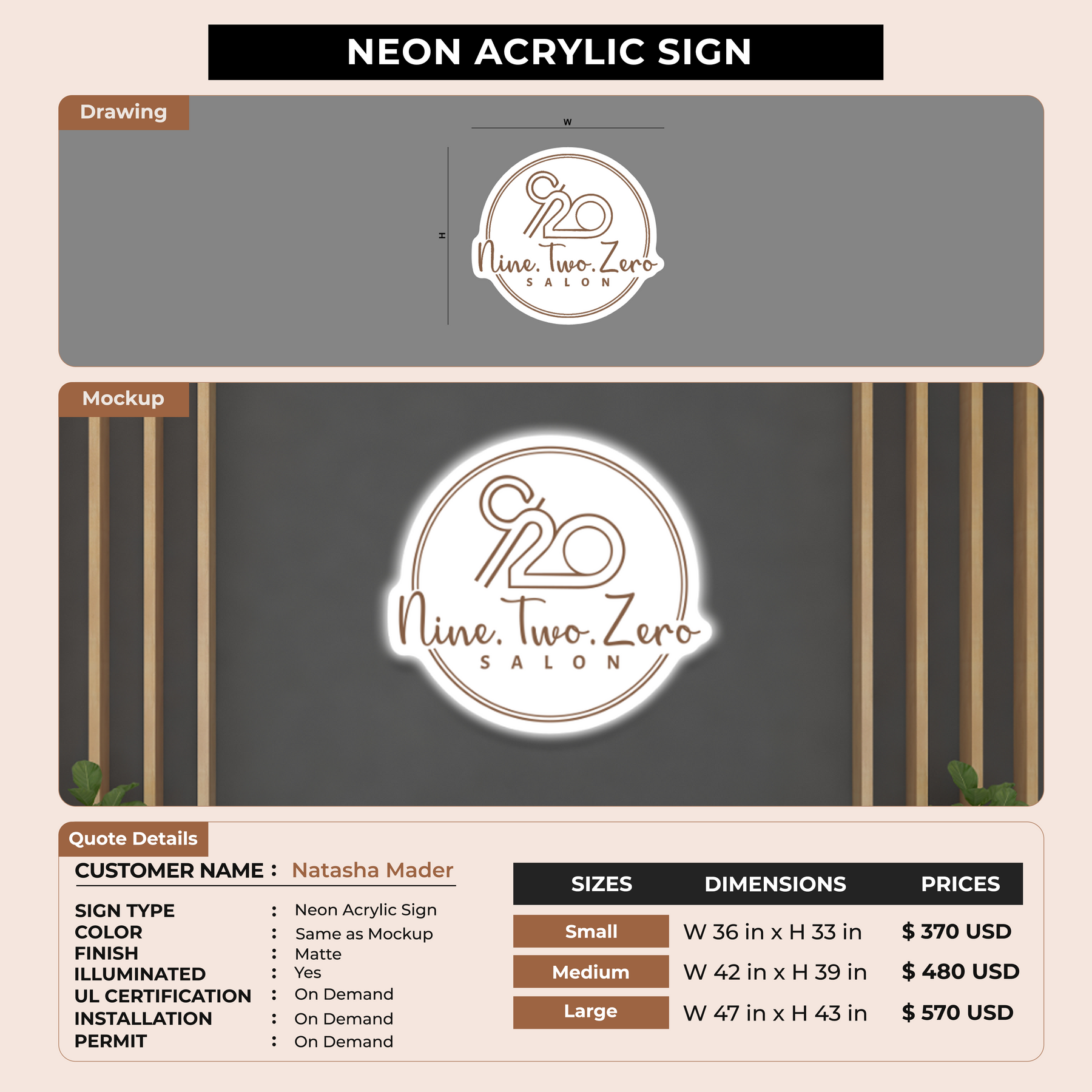Neon Acrylic Sign for Natasha Mader