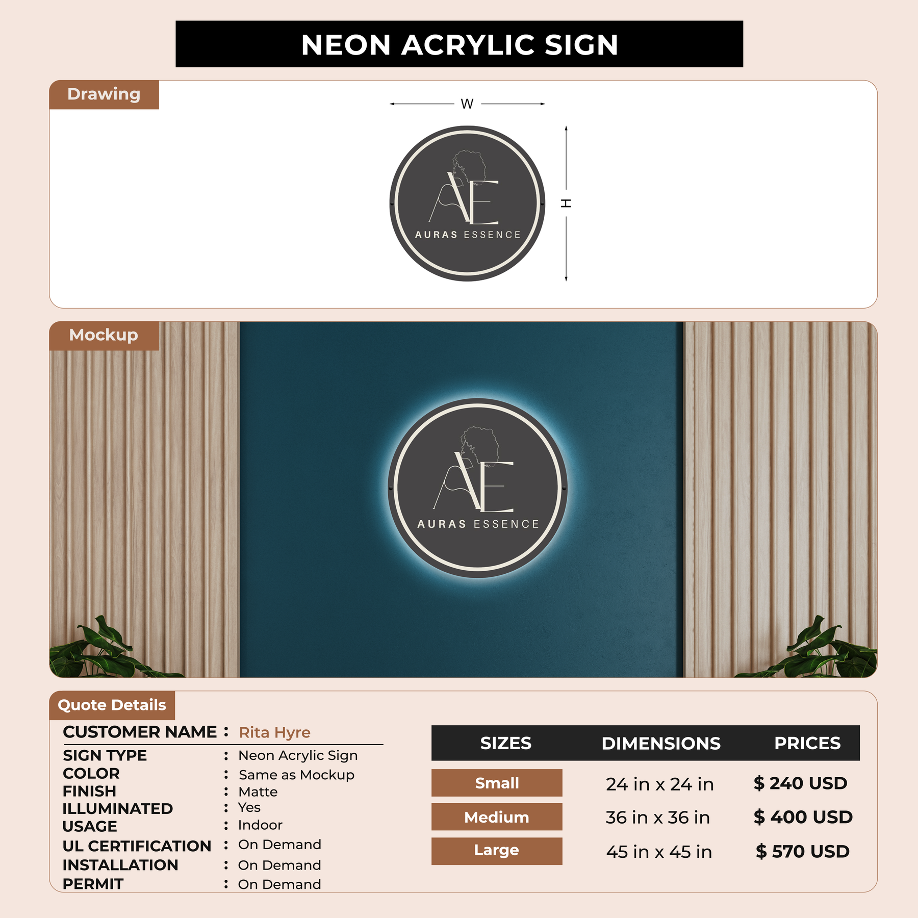 Neon Acrylic Sign For Rita Hyre