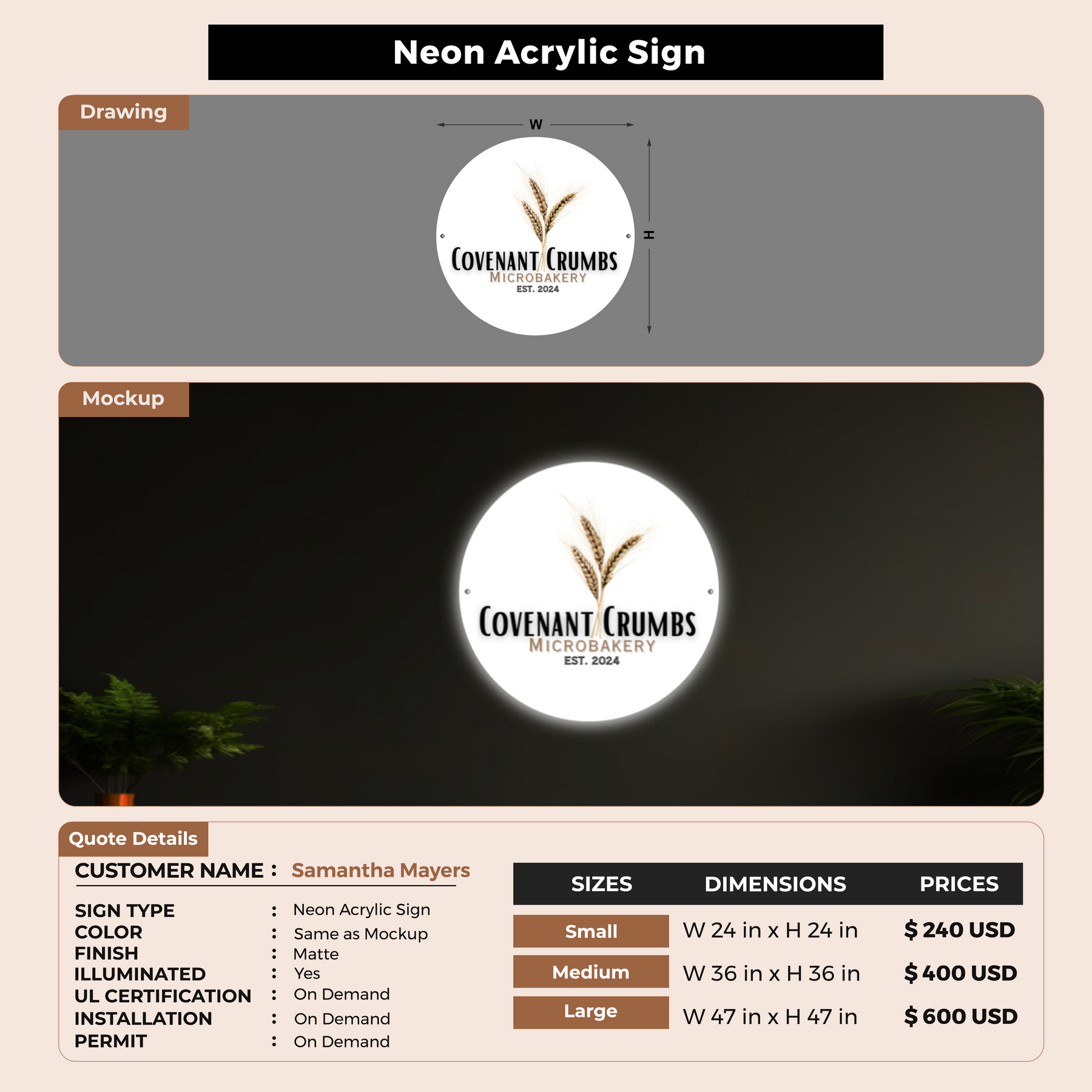 Neon Acrylic Sign For Samantha Mayers