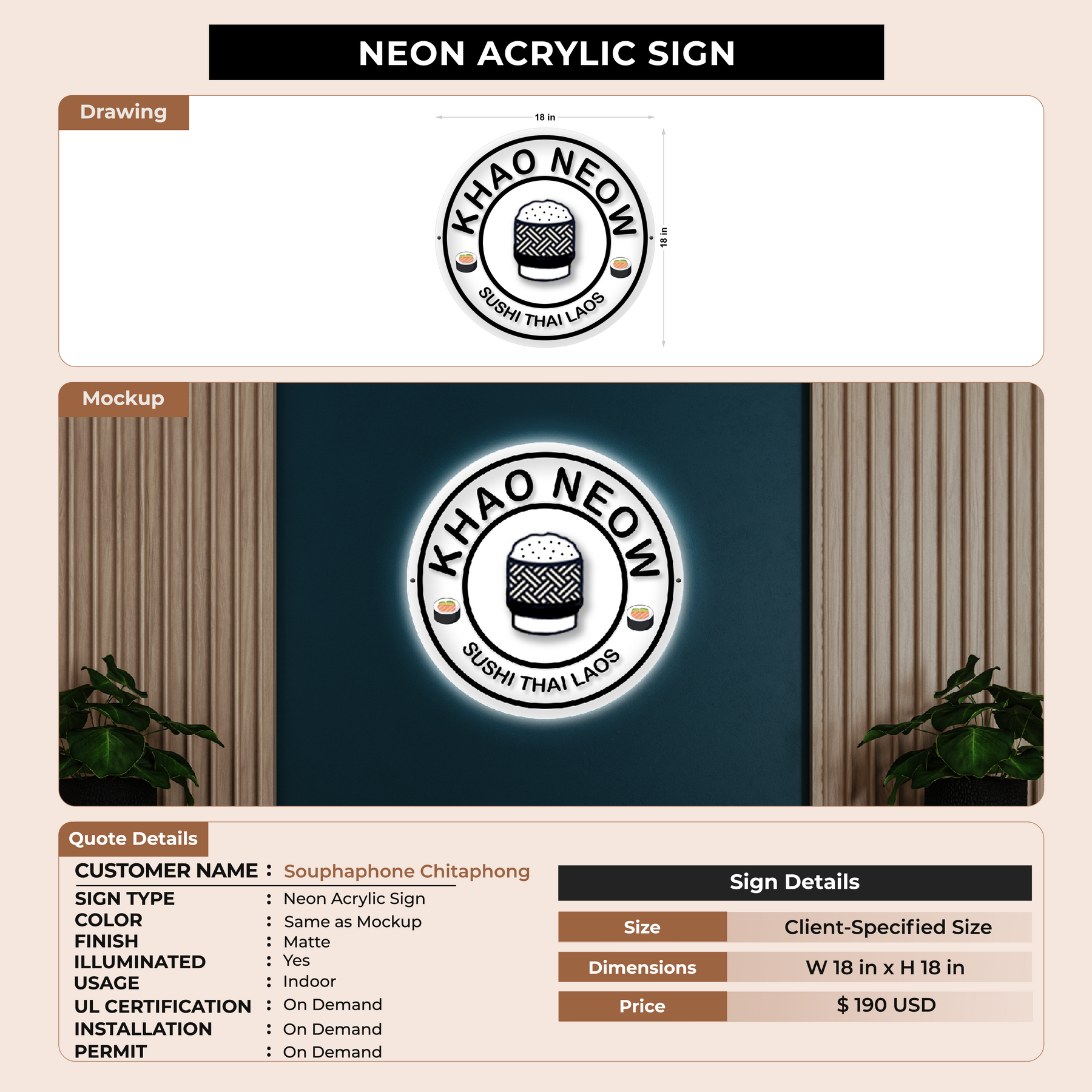 Neon  Acrylic Sign for Souphaphone Chitaphong