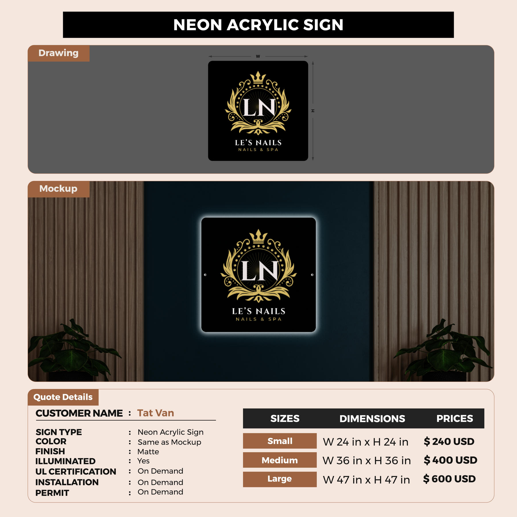 Neon Acrylic Sign For Tat Van