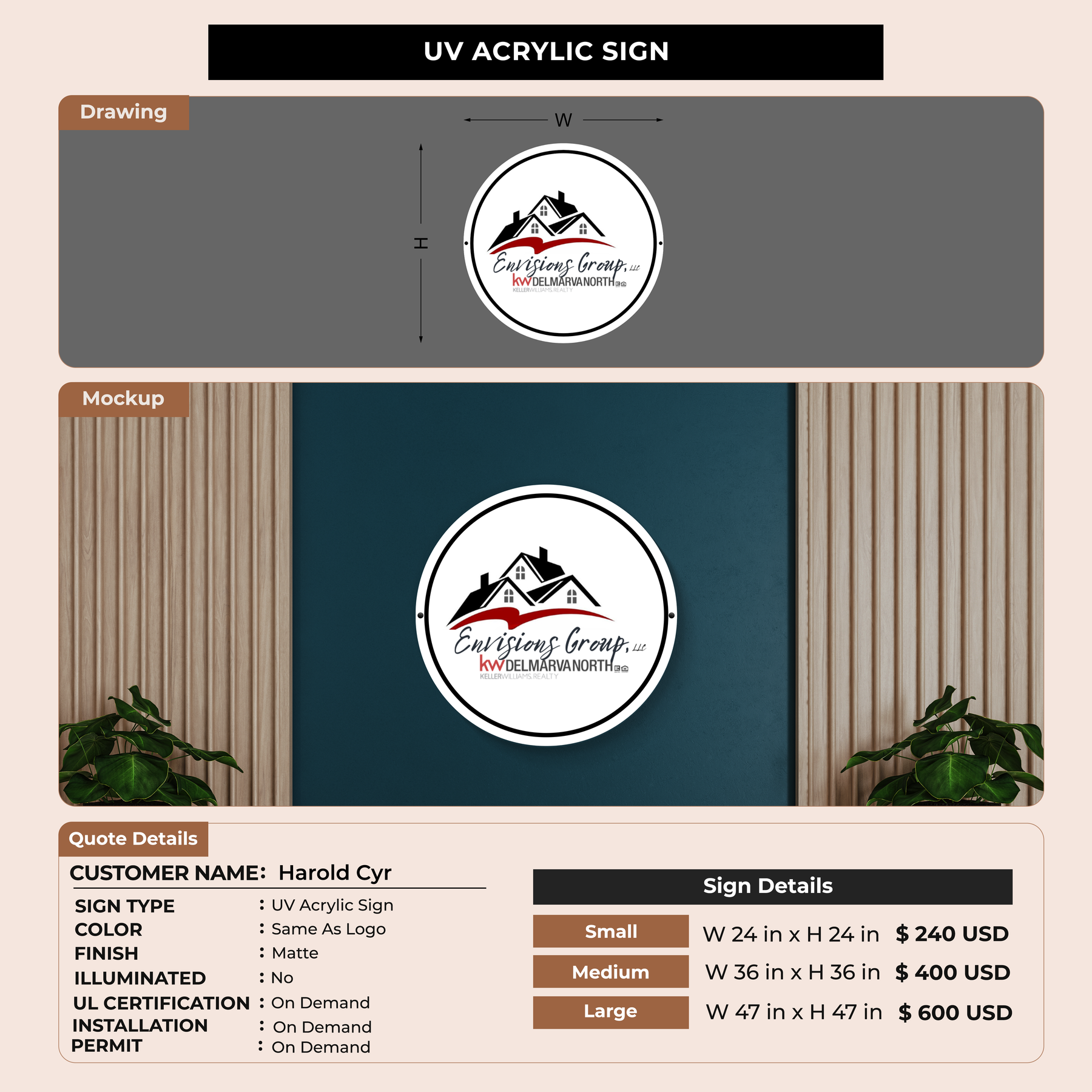 UV Acrylic Sign for Harold Cyr